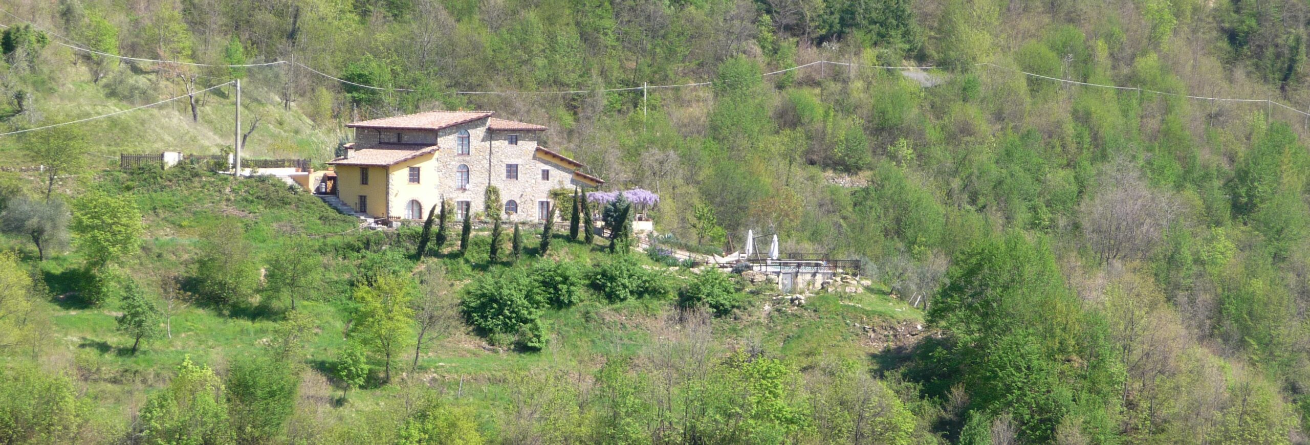 Secluded olive groves, plentiful vines and seemingly boundless chestnut woods make up the 60 acres of private land attached to the property. The villa itself sits at the very top of the land, with meadows and vineyards to either side, making it easy to keep an eye on children playing in the meadows and immediate terraces below. The large infinity pool is accessed from the terrace to the rear of the house, the pool is 12m x 5m, and flows with natural spring water from the villa’s well deep inside the Apuane hills, we add salt to maintain the beautiful crystal clear water. Guests can relax by the pool on the many luxury sunloungers or watch from the terrace under the shade of the draped pergola and large hand-made table and chairs. A breakfast terrace to the side of the house has another table and chairs, seating 6, as well as an original working pizza oven. There are raised flower beds with herbs and flowers around the patios, and aloe vera and beautiful rosemary bushes on the path down to the pool.