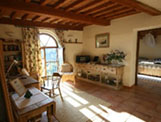 Living room 1: large traditional wood burner, unglazed terracotta floor and Tuscan chestnut beam ceiling, satellite TV, games console, DVD player, open plan archway to dining room